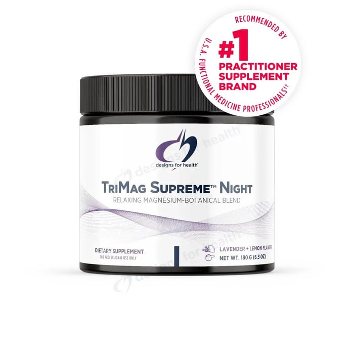 TriMag Supreme Night by Designs for Health works by combining multiple forms of magnesium with calming botanical extracts to support relaxation and nervous system balance. As a magnesium sleep supplement, it helps promote deeper, more restful sleep without relying on melatonin.